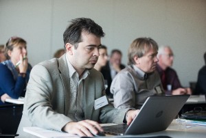 Fig 2: (Middle, left) Dimiter Prodanov, project coordinator, and (middle, right) Alain Pardon, Safety, Environmental & Health Manager atimec, at the kick-off meeting of the NanoStreeM project on January 28, 2016, at imec.