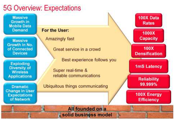 The requirements of the next-generation network differ depending on the device and service being considered. As examples, high-volume data users’ requirements center on connectivity and latency, with little consideration for efficiency and (in many instances) mobility. In contrast, IoT needs focus on reliability, cost and efficiency, and public safety needs focus on immediacy and availability almost regardless of cost. Given that some of these requirements are diametrically opposed, it would appear that a “one size fits all” network is unlikely.
