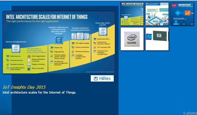 SANTA CLARA, Calif., Nov. 2, 2015 – Intel Corporation today announced a new Intel® IoT Platform reference architecture and new hardware and software products as part of its effort to build out one of the most comprehensive offerings for the Internet of Things (IoT) marketplace. The platform includes two reference architectures and a portfolio of products from Intel and its ecosystem to address the IoT opportunity. The products include new Intel® Quark™ processors for IoT, free and simple operating systems with a comprehensive cloud suite from Wind River, and analytics capabilities, all designed to build and secure smart and connected solutions from things to the cloud.