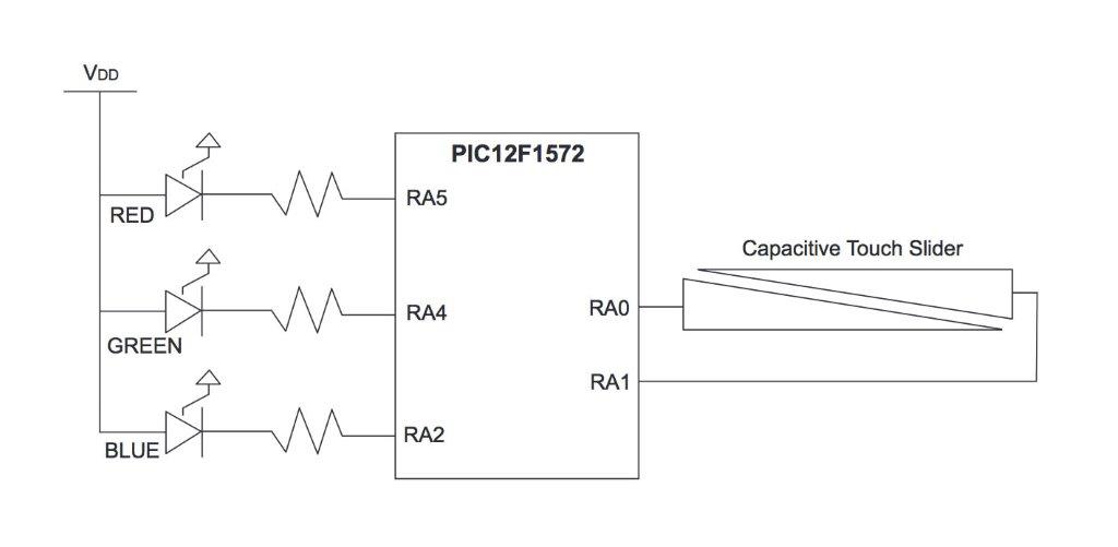 The demonstration board is configured and programmed from the factory for operation in slider mode. To operate the board in this mode, the PIC12F1572 must be programed with the RGBSlider software, and the PIC16F1455 must be erased.