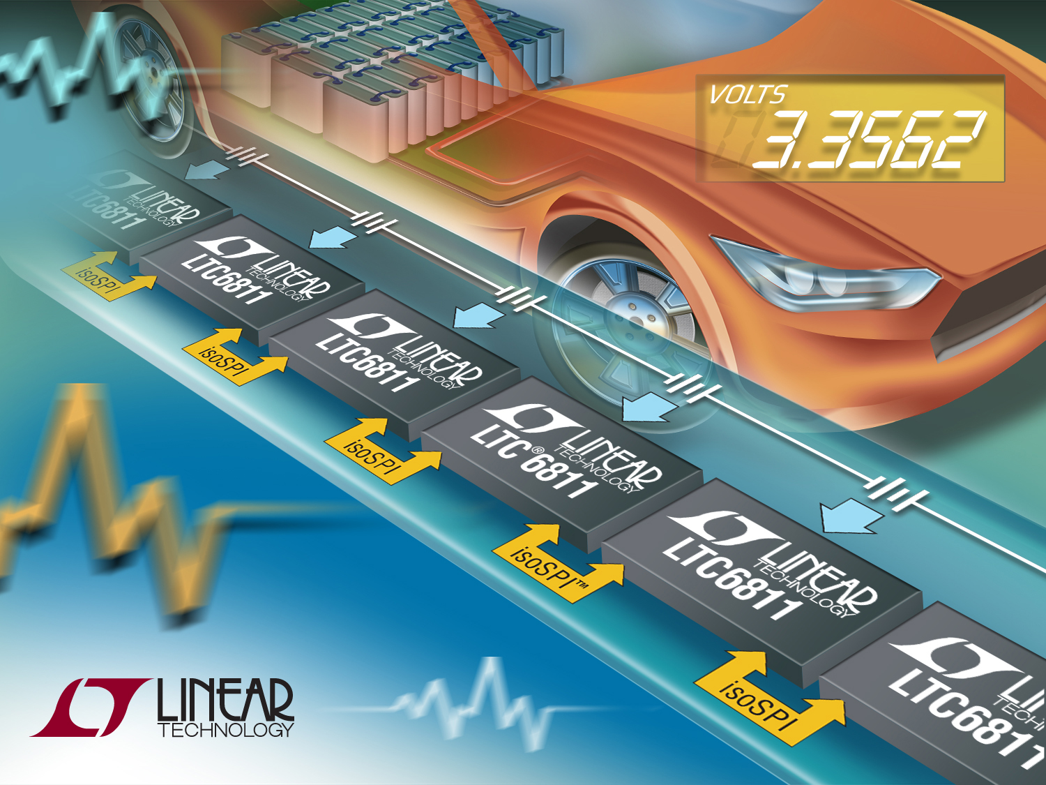 Linear Technology announces the LTC6811 high voltage battery stack monitor, a drop-in replacement for the LTC6804 with higher performance and 25% lower price. The LTC6811 is a complete battery measuring IC for hybrid/electric vehicles that incorporates a deep buried Zener voltage reference, high voltage multiplexers, 16-bit delta-sigma ADCs and a 1Mbps isolated serial interface. An LTC6811 can measure up to 12 series-connected battery cell voltages with better than 0.04% accuracy. With 8 programmable 3rd order low pass filter settings, the LTC6811 provides outstanding noise reduction. In the fastest ADC mode, all cells can be measured within 290µsec.
