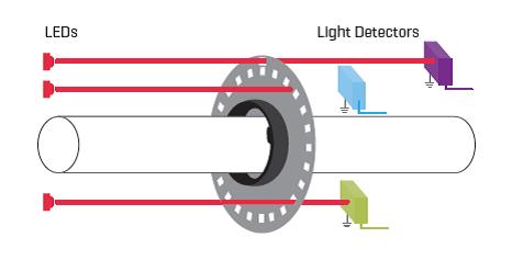 The encoder resolution, in terms of pulses per revolution (ppr) is dependent on the number of precision-spaced markings on the code wheel. Optical encoders can have very high resolution, but also suffer from several weaknesses. These include vulnerability to dust, grease or condensation, which can collect on the code wheel and cause missed or false readings. In addition, LED brightness will lessen over time and ultimately burn out, leading to failure that can only be remedied by replacing the encoder.