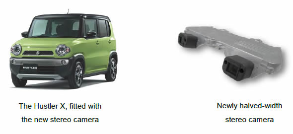 Hitachi Automotive Systems, Ltd. today announced that the company has halved the width of both lenses of its stereo camera compared to the previous model and has been fitted to the Hustler (X, X Turbo, specially-equipped J STYLE II), released for sale this month by Suzuki Motor Corporation.