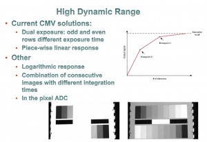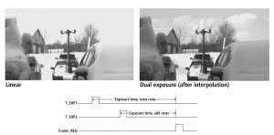 - by equipping the sensor’s odd and even rows with different sensitivities for light and dark and calculating an appropriate average value for all regions of the image (Figure 6), or
