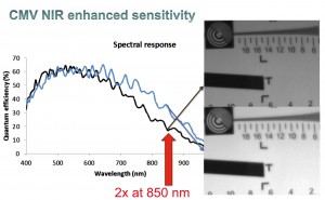 Extending the spectral range of CMOS sensors to the near-infrared realm is becoming more and more important as a market trend (Figure 8). This especially applies to traffic applications but also to machine vision, because it allows the illumination of the scene to be monitored with flash lights that are invisible to the human eye.
