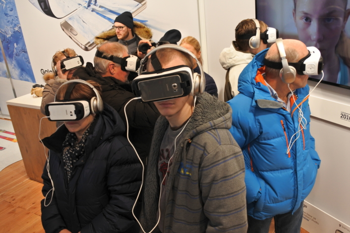 Fans at the Samsung Galaxy Studio in Lillehammer experience the feeling of being inside of the Opening Ceremony events through the first-ever Live Streaming of Olympic Games content made possible by the IOC and Samsung Galaxy smartphones and VR technology.