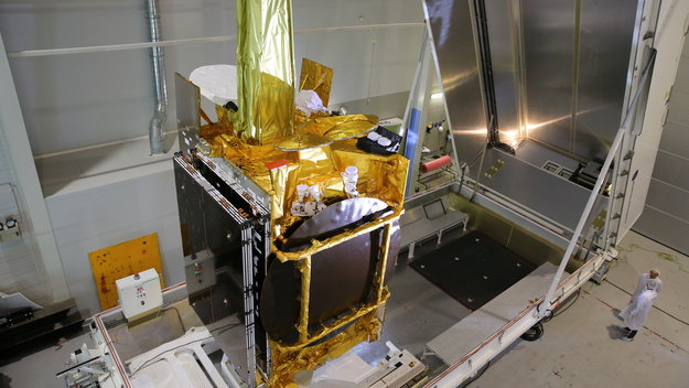 EDRS-A is the first element of the European Data Relay System, which will collect information from low-orbiting satellites via laser and send it down to Earth in near-real time. It was packed into an Antonov plane by Airbus Toulouse, France and flown to Kazakhstan in November.