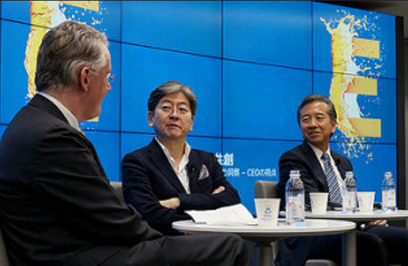 featured: Left to right: Peter Korsten, Global Leader ,Thought Leadership and Eminence, IBM Global Business Services, Oki Matsumoto, Founder, Chairman and Chief Executive Officer of Monex Group, Inc., Paul Yonamine, General Manager, IBM Japan (Credit: IBM)