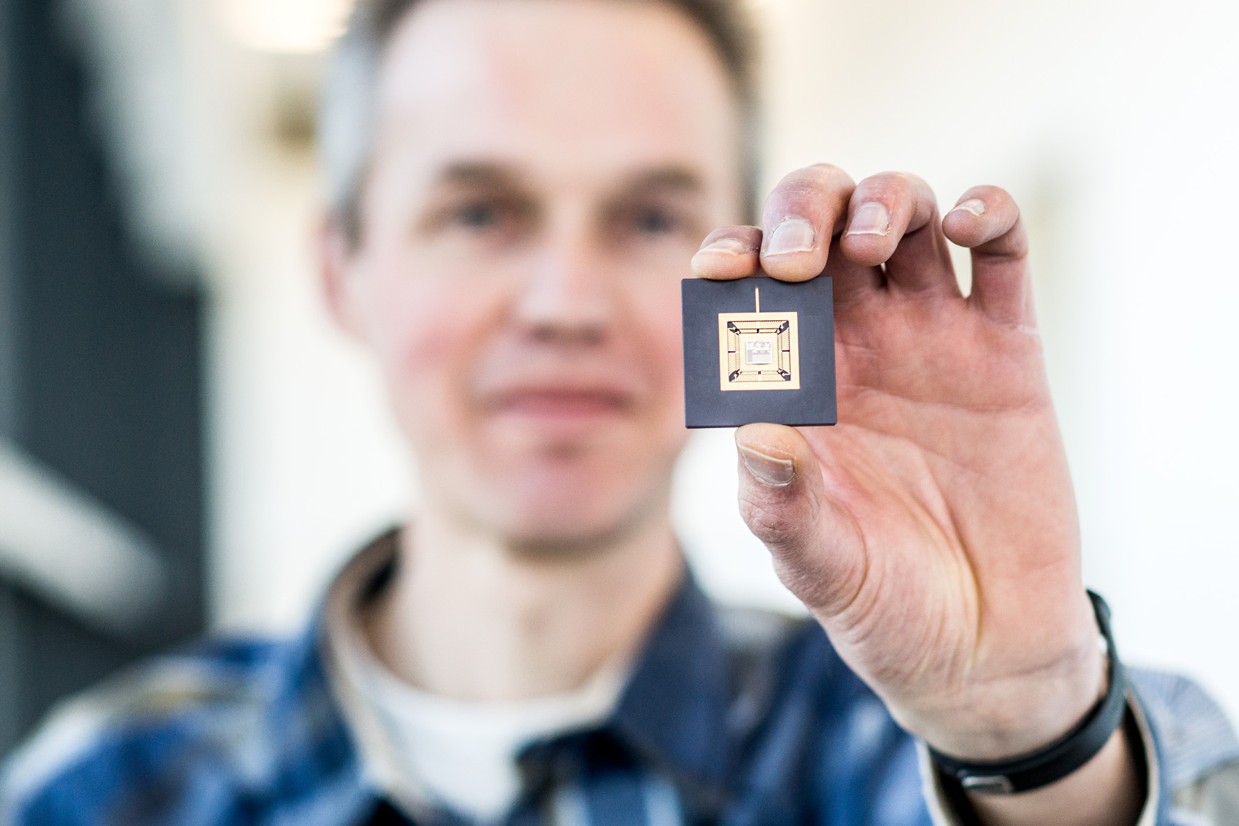 Mario Konijnenburg with his multi-sensor chip.