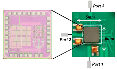 The traditional way of breaking Lorentz Reciprocity and building radio-frequency circulators has been to use magnetic materials such as ferrites, which lose reciprocity when an external magnetic field is applied. But these materials are not compatible with silicon chip technology, and ferrite circulators are bulky and expensive. Krishnaswamy and his team were able to design a highly miniaturized circulator that uses switches to rotate the signal across a set of capacitors to emulate the non-reciprocal “twist” of the signal that is seen in ferrite materials. Aside from the circulator, they also built a prototype of their full-duplex system—a silicon IC that included both their circulator and an echo-cancelling receiver—and demonstrated its capability at the 2016 IEEE International Solid- State Circuits Conference this past February.