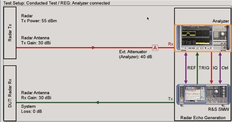 For pure receiver tests, the R&S®SMW200A can be used as an echo generator even without the spectrum analyzer. It generates the transmit signals in the digital baseband, e. g. using the R&S®Pulse Sequencer software (see article on page 33).