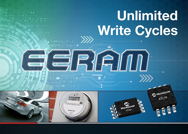 Microchip announces a new low-cost, low-risk memory solution offering unlimited endurance and safe data storage at power loss. This new I2C EERAM memory is an easy to implement, non-volatile SRAM (NVSRAM) that is ideal for applications that need to constantly or instantaneously record, update or monitor data in sectors which include metering, automotive and industrial.