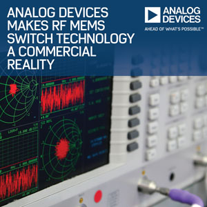 The first in a new product series, ADI’s ADGM1304 and ADGM1004 RF MEMS switches are 95 percent smaller, 30 times faster, 10 times more reliable, and use 10 times less power than conventional electromechanical relays.