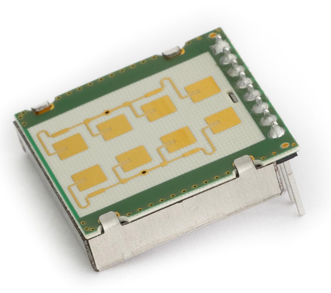 The 24 GHz transceiver MMIC radar sensors BGT24LTR11 and BGT24MR2 offer a fully integrated low phase noise voltage controlled oscillator (VCO) and built-in temperature compensation circuit for VCO stabilization. Additionally, they have full ESD protection, 200 GHz bipolar SiGe: C technology B7HF200 and single supply voltage of 3.3 V. Thus, the transceiver MMICs are the ideal partners for the RFbeam modules.