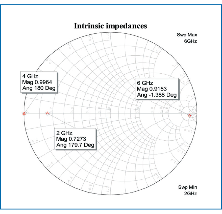 - Figure 3: Smith chart view of the fundamental and harmonic impedances of the output tuner
