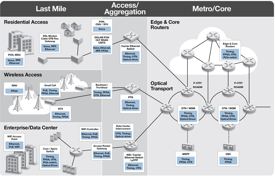 Microsemi is a premier supplier of high value-add semiconductor, system and services for the enterprise, data center and telecom markets. Microsemi products enable customers to build secure, reliable and low power systems that can meet stringent requirements of next generation communication networks. Customers leverage Microsemi technologies to drive innovation in a range of applications including edge and core routers, Ethernet switches, optical transport network (OTN), wireless infrastructure including LTE-Advanced, small cells and Wi-Fi access points; access aggregation and broadband gateways including fiber/PON, G.fast and DOCSIS3.1.