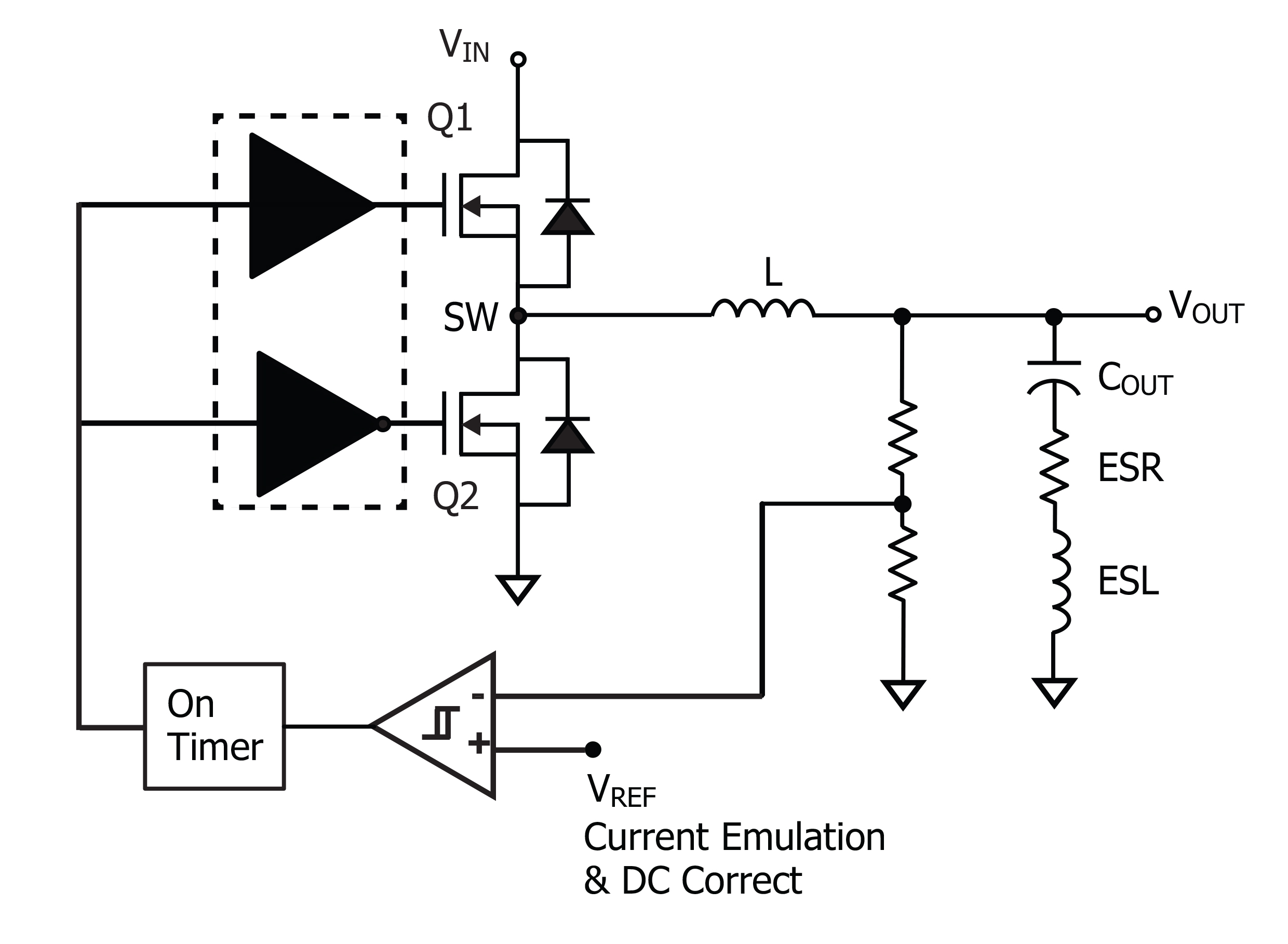 - Figure 1: Simplified functional circuit schematic of a COT buck (step-down) switching regulator