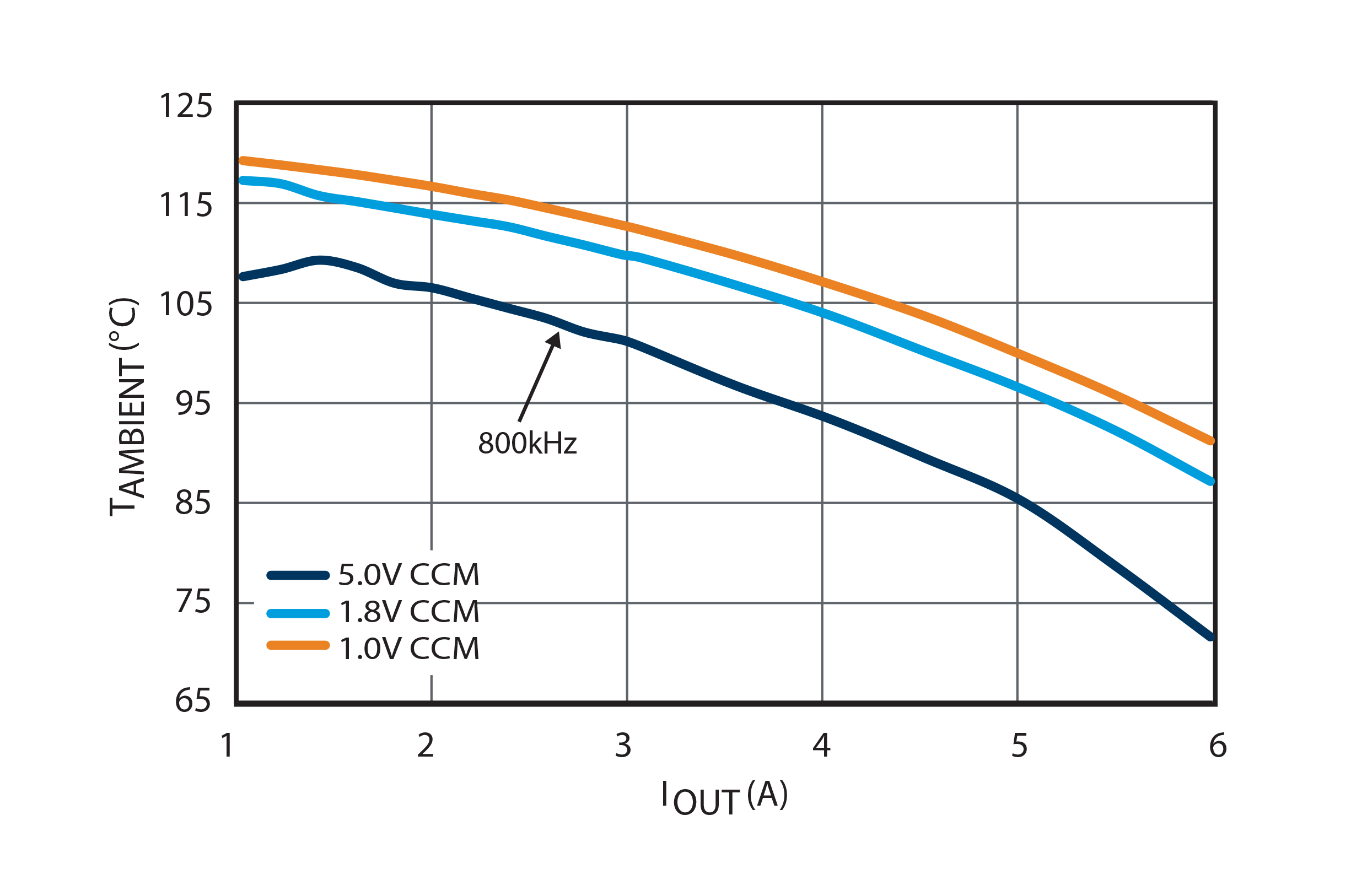 Combined with the regulator’s intrinsic high power conversion efficiency that minimizes internal losses, these modules can deliver full power with little or no de-rating required – see figure 3. This solid performance specification allows the modules to be easily used in multiple applications simply by replacing a few passive components. This saves development time and R&D expense and results in a faster time-to-market and a more competitive product positioning.