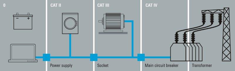 If hazardous live voltages need to be measured, users have to pay special attention to the instrument’s IEC 61010-1-compliant measurement category. In a CAT IV environment – upstream of the main fuse of a building’s power supply – overvoltages of up to 8000 V can occur when measuring a maximum voltage of 600 V. The safety of the user is only guaranteed if the measuring instrument was developed for these overvoltages and has the corresponding certification. The R&S Scope Rider is certified for voltage measurements up to 600 V for CAT IV environments and up to 1000 V for CAT III environments. It can therefore be used for power quality monitoring at all points of the installation.