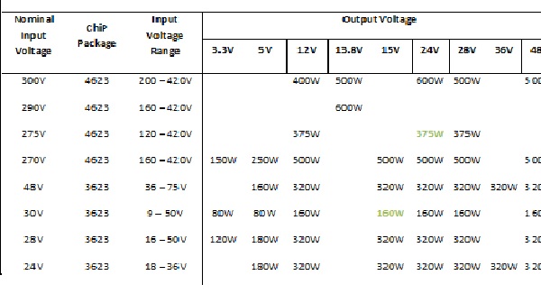 Table 1 – Vicor’s DCM Family – Items in green are newly released, others were previously announced.
