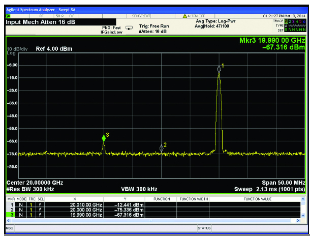 - Figure 2: Spectrum plot of HMC773A passive mixer vs HMC8191 IQ mixers at IF input of 1 GHz and LO input of 16 GHz