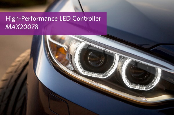 The MAX20078 synchronous buck, high-brightness LED controller from Maxim Integrated Products, Inc. (NASDAQ: MXIM) is the only product available which provides both fast response time and low electromagnetic interference (EMI) for exterior LED lighting and improved safety applications. Ideal for matrix lighting designs, the LED controller allows designers to achieve high performance, ease of design, and fast time-to-market.