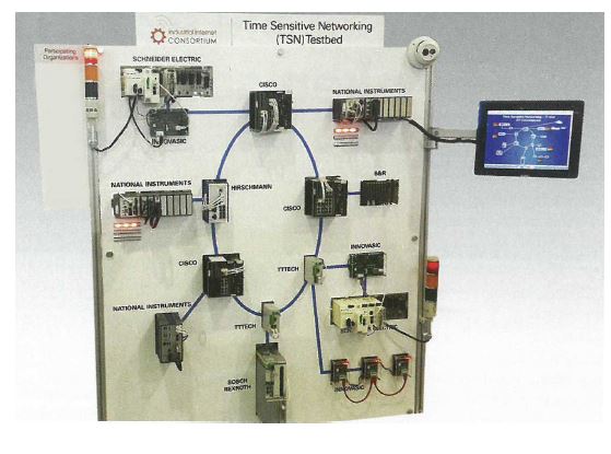Fig 1. The image shows a TSN (Time Sensitive Network) testbed courtesy of National Instruments and the IIC