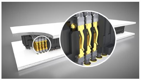 At Samtec, two contact systems are most popular for industrial applications. First is a multi-finger, heat-treated BeCu system contact. This is commonly used in 1.27 and 2.00 mm pitch systems. Although these are micro interconnects systems, the contact is designed for rugged environments. For example, a slot in the tail allows more surface area for solder adhesion. Also, connectors with micro tail slots tend to adhere to the wet solder paste prior to reflow better than flat leads. All of this increases the mechanical strength of the connector to the PCB.