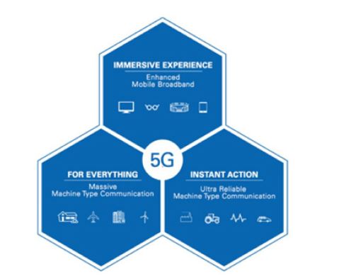 Figure 1. Targeted 5G applications include enhanced mobile broadband and machine-to-machine communication.