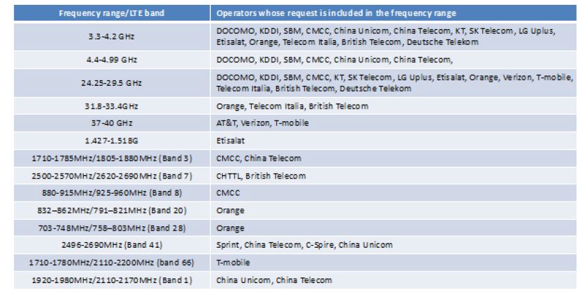 NTT DOCOMO presented its recommendation for which frequency bands should be used during the last RAN4 meeting (#82) in a Way Forward (WF). Table 1 summarizes the frequency ranges and corresponding telecom operators.