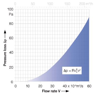 It would be too complex to determine the actual pressure loss for every application as it would require detailed knowledge of fluid dynamic equations but it can be approximated by using the characteristic device curve shown below in Figure 1. This will give an initial starting point which can be used for further evaluation.