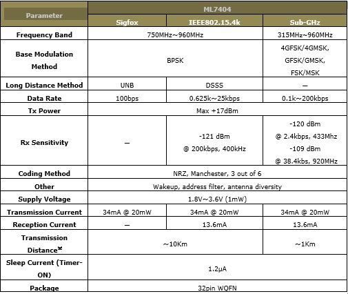 The ML7404 is a dual-mode LPWA wireless communication LSI compatible with both IEEE802.15.4k and the Sigfox standard utilized predominately in Europe.