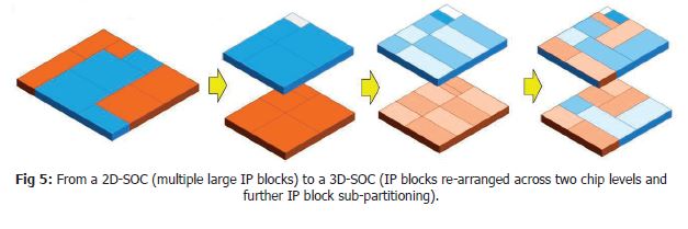 In a next step, the partitioning can be revised by making even smaller functional IP blocks and rearrange them into another shape that would further reduce the wire length. The (re-)partitioning should however be done in a clever way, avoiding over-partitioning. For example, if a circuit consists of sub-circuits that are extremely interconnected, ripping them apart may result in too many wires that go up and down between the two resulting dies. And that would cause more problems than solving anything.