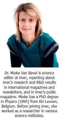 In this 3D technology landscape, several classes of 3D integration can be defined. The main difference between these classes is related to the level of partitioning, in other words: at which level in the interconnect hierarchy the systems are ‘cut’ into different pieces. Each of these clas-ses requires different process schemes and 3D integration techniques, achieving progressively smaller contact pitches. A first class is what we call system-in-a-package (or SiP), where the partitioning is done at package level – by stacking packages on top of each other, or by inte-grating multiple die in a single package. Among the technologies used to realize SiPs are package-to-package reflow and fan-out wafer level packaging, in combination with solder balls. Contact pitches of current solutions are rather coarse, in the 400 micrometer range. Imec’s re-search into new approaches to fan-out wafer level packaging intends to increase the interconnectivity of this class of SiP by a factor 100, target-ing interconnect pitches of 40 micrometer. The technique is applied for example for mobile applications such as smartphones. In a second class, called 3D stacked IC or 3D-SIC, the partitioning is done at die level and individual dies are stacked on top of each other. 3D-SIC partitioning is achieved using die-to-interposer stacking or die-to-wafer stacking, where finished dies are bonded on top of a fully processed wafer. Dies are interconnected using through-Si vias and microbumps. In the industry, microbump pitches down to 40 micrometer are achieved today. Imec’s research goal is to bring this pitch down, well below 20 micrometer, as such increasing the interconnectivity by one to two orders of magnitude. A typical application example is wide I/O memory, where vertically stacked DRAM chips (3D-DRAM) are connected on a Si interposer together with a logic die and an optical I/O unit.