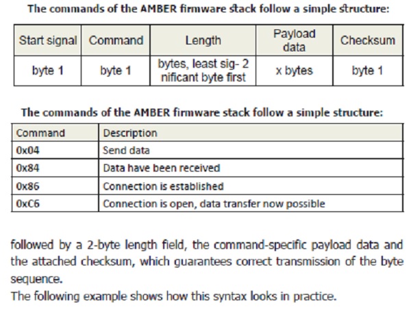 The Smart Factory or the Smart Home rarely originate as green field developments. Intelligent networking of devices and sensors is far more likely to be introduced as an upgrade to existing products and solutions. AMBER wireless therefore paid special attention to easy integration. From its inherent design, AMB2621 has a firmware stack which can be controlled via a serial interface with commands similar to the AT command set. The commands available allow developers to configure the BLE interface for their purposes to allow adjustment of the power and speed of data transmission, as well as the resulting electricity consumption of the respective application. Other commands control connection set-up, data transmission and switching to various power saving modes.