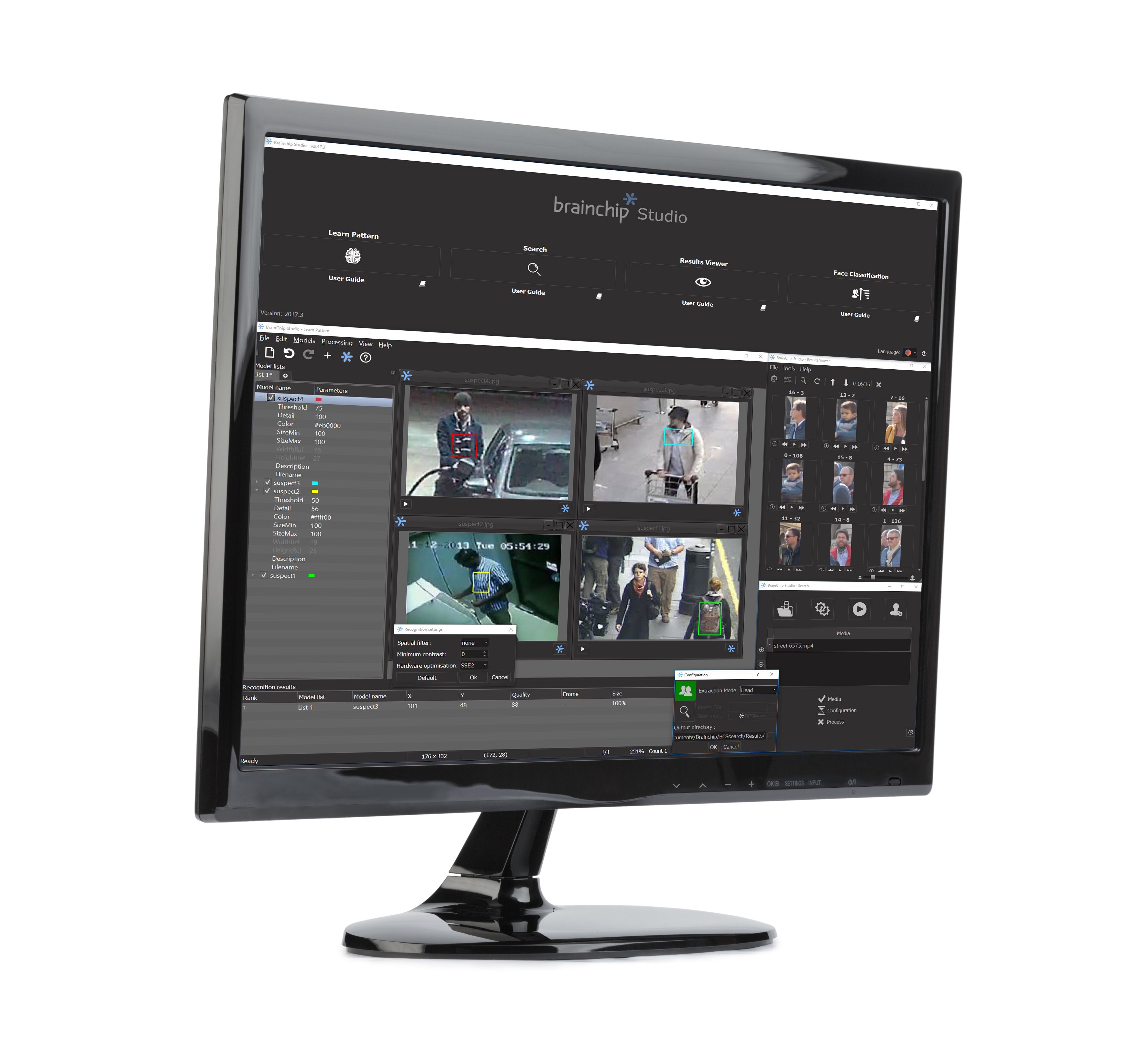 BrainChip Studio is an AI-powered video analysis software suite delivering high-speed object search and facial classification. It finds faces and objects 20 times quicker than a human operator. The software and hardware accelerated solutions work with existing infrastructure, even with low-light and low-resolution images.