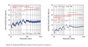 Figure 2 shows a 3.3V/16A, 4-phase solution for SOC power. Figure 3 shows the radiated EMI test results.