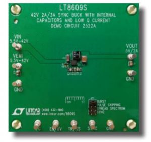 The Power by Linear™ LT®8650S, LT8609S, and LT8645S have much higher output current capabilities than typical monolithic regulators due to high efficiency and thermal management features. Input voltage ranges from 3V to 42V (65V for the LT8645S) cover the spectrum of automotive battery conditions. These monolithic ICs have integrated MOSFETs and can run at greater than 2MHz, resulting in reduced solution size and cost while avoiding the AM band. Silent Switcher regulators are designed to minimize EMI, making them a popular
