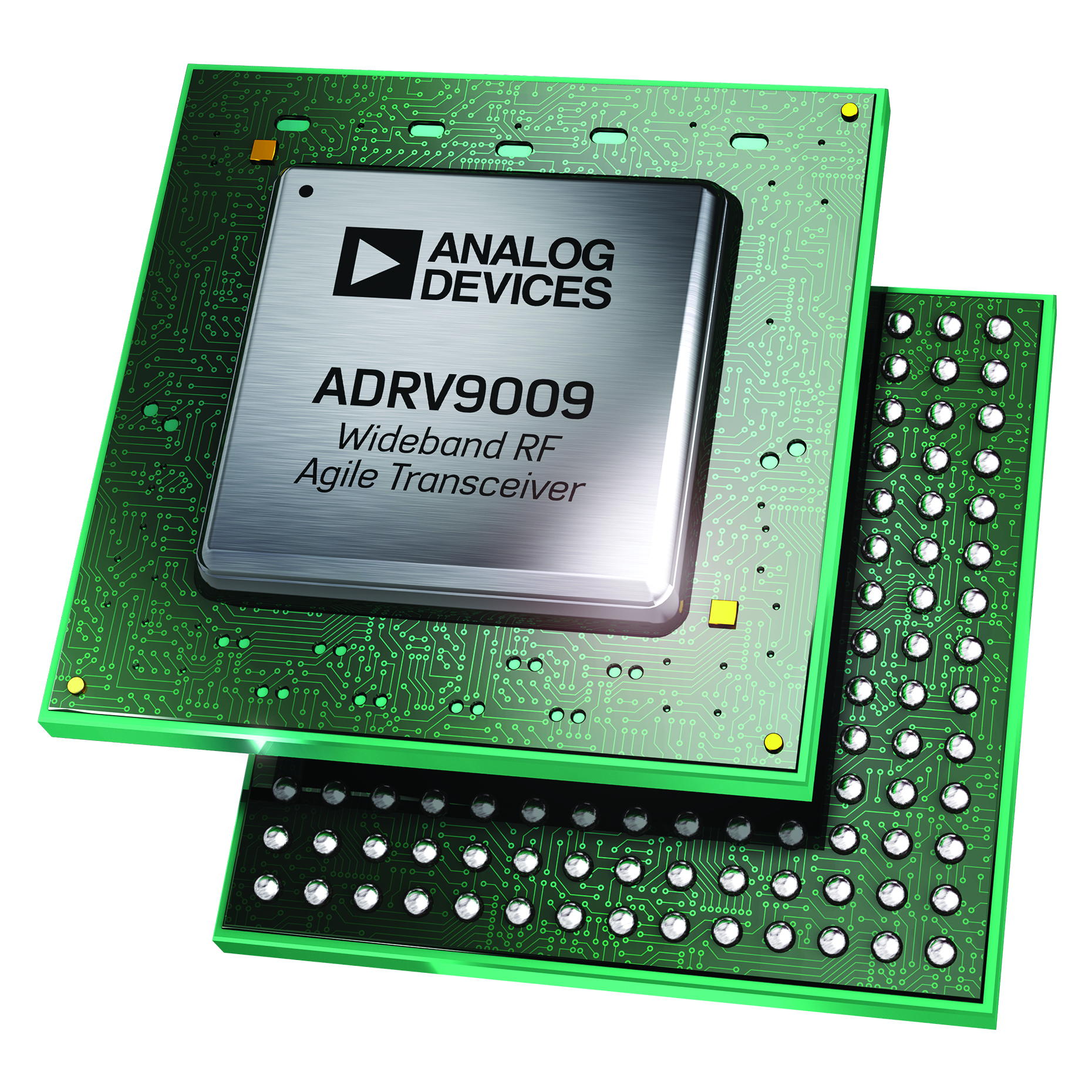 The ADRV9009 is the industry’s first RF transceiver to support all existing cellular standards. The device is tunable over a range of 75 MHz to 6 GHz to support 2G/3G/4G/5G services, which allows cellular equipment manufacturers to adopt a single, compact radio design across all band and power variants. This reduces product design times by as much as half while simplifying the deployment and maintenance of multi-band, multi-standard communications equipment.