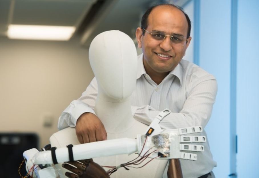 The super-flexible, hypersensitive skin may one day be used to make more responsive prosthetics for amputees, or to build robots with a sense of touch. Brainy Skin reacts like human skin, which has its own neurons that respond immediately to touch rather than having to relay the whole message to the brain. This electronic ‘thinking skin’ is made from silicon based printed neural transistors and graphene – an ultra-thin form of carbon that is only an atom thick, but stronger than steel. The new version is more powerful, less cumbersome and would work better than earlier prototypes, also developed by Professor Dahiya and his Bendable Electronics and Sensing Technologies (BEST) team at the University’s School of Engineering. His futuristic research, called neuPRINTSKIN (Neuromorphic Printed Tactile Skin), has just received another £1.5m funding from the Engineering and Physical Science Research Council (EPSRC).