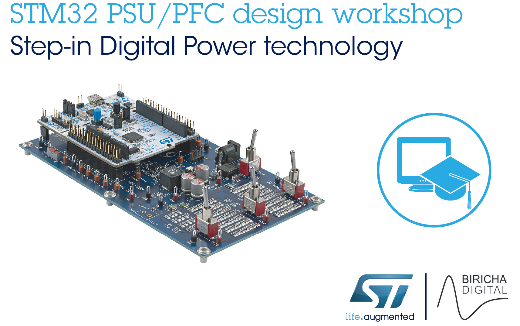 The workshop, aimed at analog PSU (Power Supply Unit) designers and embedded-system engineers who need to build high-performance, stable digital power supplies and Digital PFCs (Power Factor Corrections), will be based on a complementary portfolio of tailored hardware, software, tools, labs and detailed training documentation. This includes the STM32F334 product line (with its high resolution timer – 217ps), a member of ST’s industry-leading STM32 family of more than 800 MCUs covering the full spectrum from ultra-low power to high performance and supporting ecosystem, combined with Biricha’s Power Supply and PFC design software.