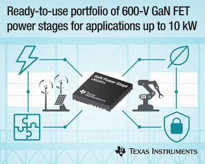 Texas Instruments (TI) (NASDAQ: TXN) today announced a new portfolio of ready-to-use, 600-V gallium nitride (GaN), 50-mΩ and 70-mΩ power stages to support applications up to 10 kW. The LMG341x family enables designers to create smaller, more efficient and higher-performing designs compared to silicon field-effect transistors (FETs) in AC/DC power supplies, robotics, renewable energy, grid infrastructure, telecom and personal electronics applications. For more information, see https://www.ti.com/lmg3410r050-pr, https://www.ti.com/lmg3410r070-pr and https://www.ti.com/lmg3411r070-pr.