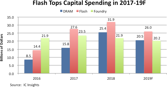 2019 to be third year of greater than $25.0B in spending for flash, topping both DRAM, foundry.
