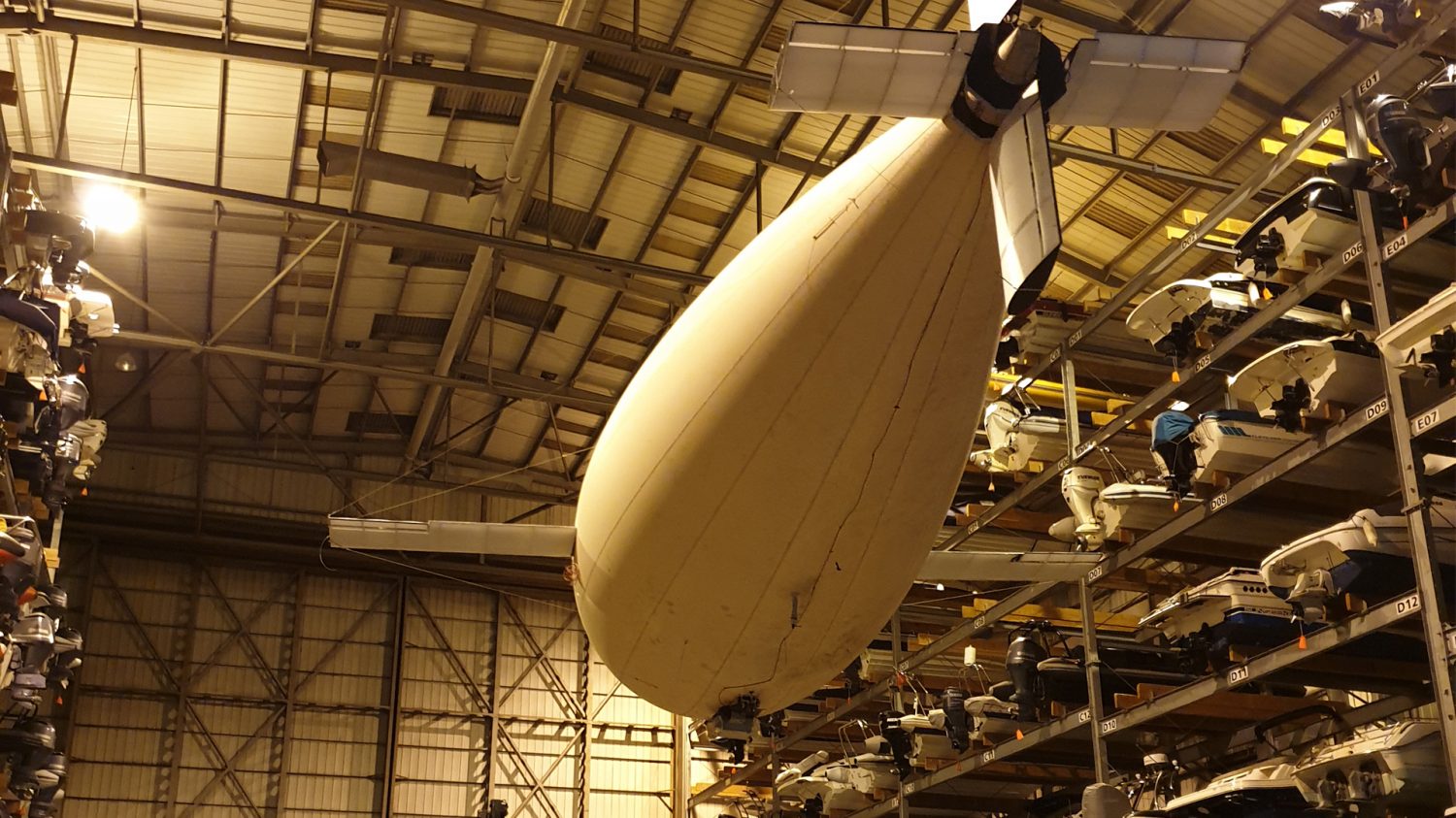 The fuselage is made from a vectran-based woven material and contains ~120m3 of Helium, providing buoyancy sufficient to make the complete vehicle lighter than air and ascend like a balloon. Within the fuselage is a separate air bag of 6m3 capacity. Pumps located at the mouth of this air bag can inhale and compress air from outside and thereby add weight (without altering the displacement) sufficient to overcome the buoyancy. This transition to heavier-than-air flight allows the aircraft to descend like a conventional aeroplane. The release of the compressed air returns it to a lighter-than-air configuration and the process is repeated. The forward inclination of the lift/buoyancy vectors with respect to the flight path, and the expulsion of the compressed air through a rearward facing vent, provide a thrust force that propels the aeroplane forwards without need of any other form of propulsion.
