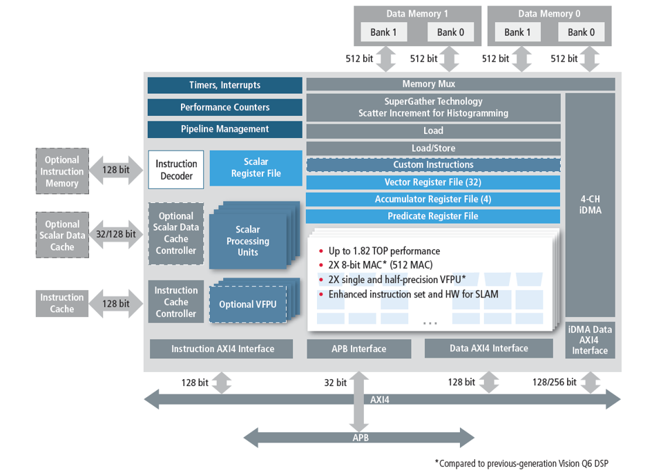 The Tensilica Vision Q7 DSP offers the following high-level features: