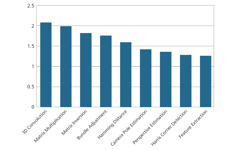 Figure 7: The Vision Q7 DSP speed over the Vision Q6 DSP: Up to 2X improvement on various blocks of SLAM