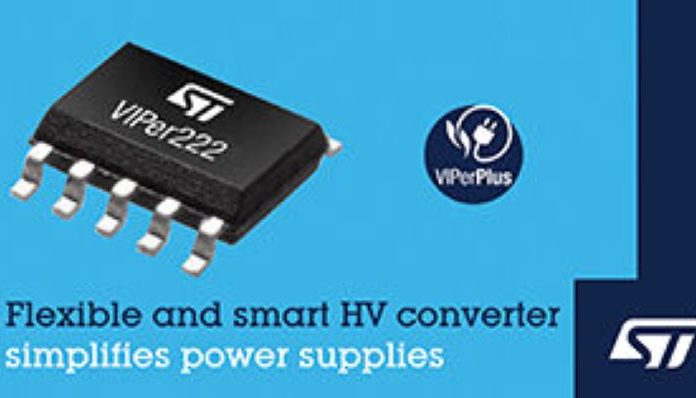 STMicroelectronics’ VIPer222 controller for high-voltage converters up to 8W brings small size, low cost, and versatility to applications such as home appliances, building-automation devices, smart lighting, and smart meters.