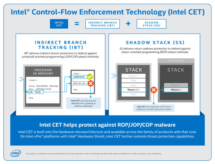 Intel Control-Flow Enforcement Technology Available in ‘Tiger Lake’ Adds CPU-Level Protection Against a Common Class of Malware