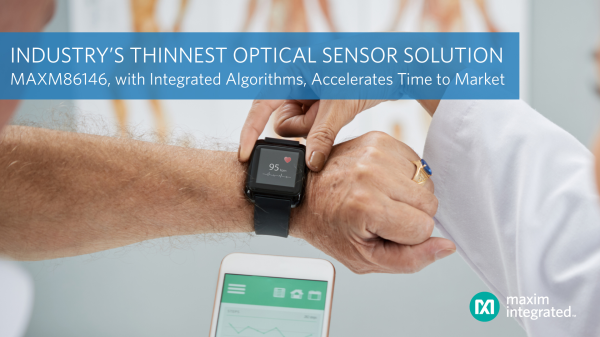 The MAXM86146 offers designers of advanced wearable products the ability to achieve a 45 percent thinner optical design versus a discrete approach. Additionally, the module offers ready-to-use biosensing algorithms that measure vital signs to the most rigorous medical standards, allowing even more time to develop market-differentiating features. It saves designers up to six months in bringing new products to market and provides extra time and space to expand functionality.