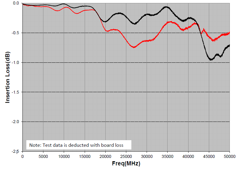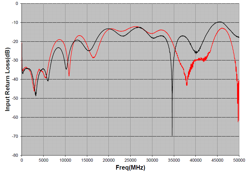 Figure 4: Next Generation 45 GHz Broadband Equalizers Optimized bonding (BLACK) vs original Bonding (RED)